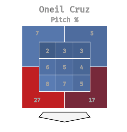 More proof of Cruz finally getting his true strike zone called on him is the fact that Cruz struck out looking 20 times in the bottom half of the strike zone. Most of these strikeouts were also recorded on the line of the strike zone as well, generally being considered borderline calls. With the inconsistencies of many MLB and MiLB umpires, it’s fair to say that these calls on the black may not have been called in his time in the minors.