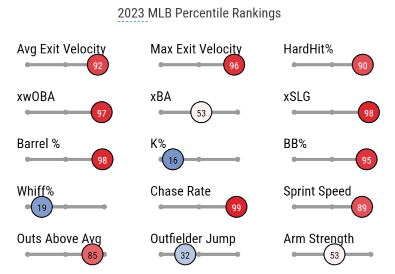 Although he hit 19 homers in 2022, Suwinski overall did not see the baseball well. Suwinski maintained good barrel rates, as he would be in the top 14% of all of baseball. But, Suwinski would rank in the bottom 85% of all of baseball when it came to whiff%.